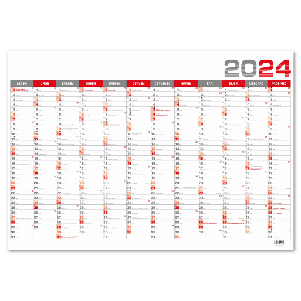 Nástěnný roční kalendář 2024 B1 - ČervenáRozmer: 964 x 670 mm