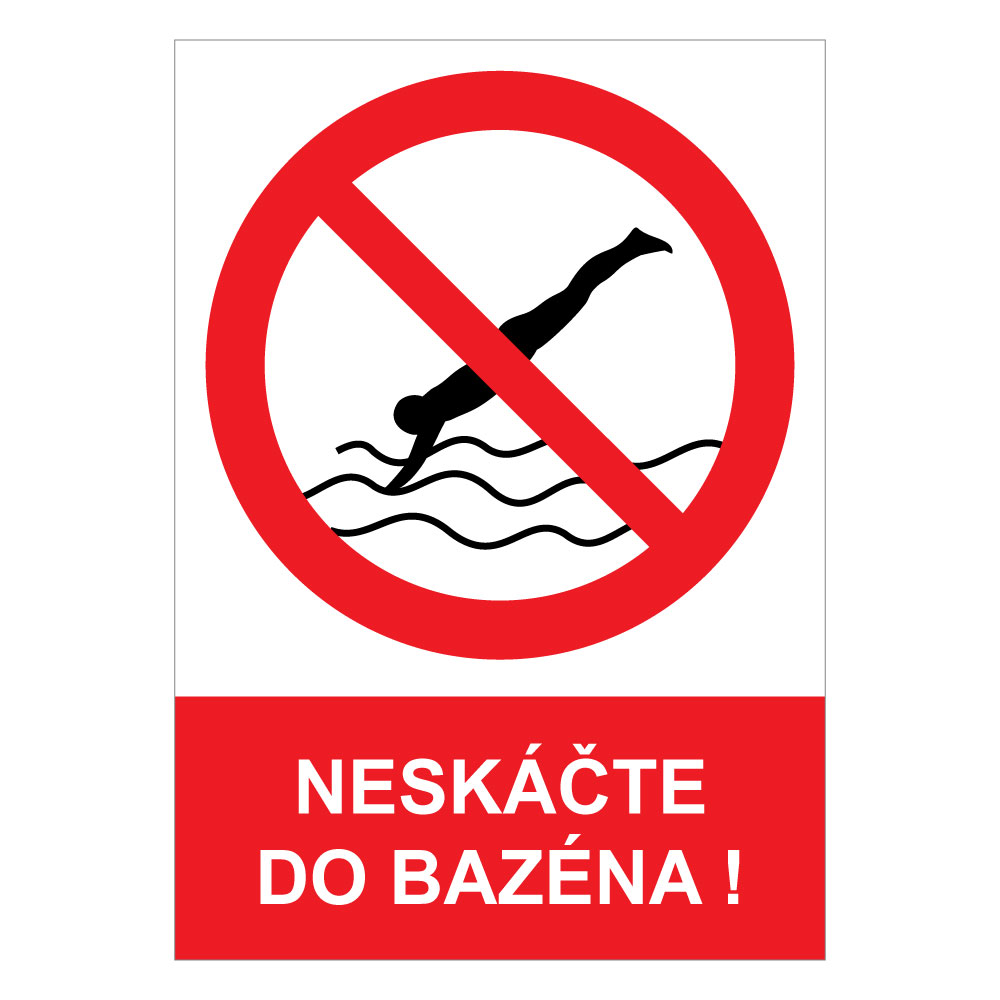 | Neskáčte do bazéna! - bezpečnostná tabuľka , samolepka A5 | RBT-SA5-068-SK | Samolepka | A5 (cca 148x210) | 0.61 | 0.75 |