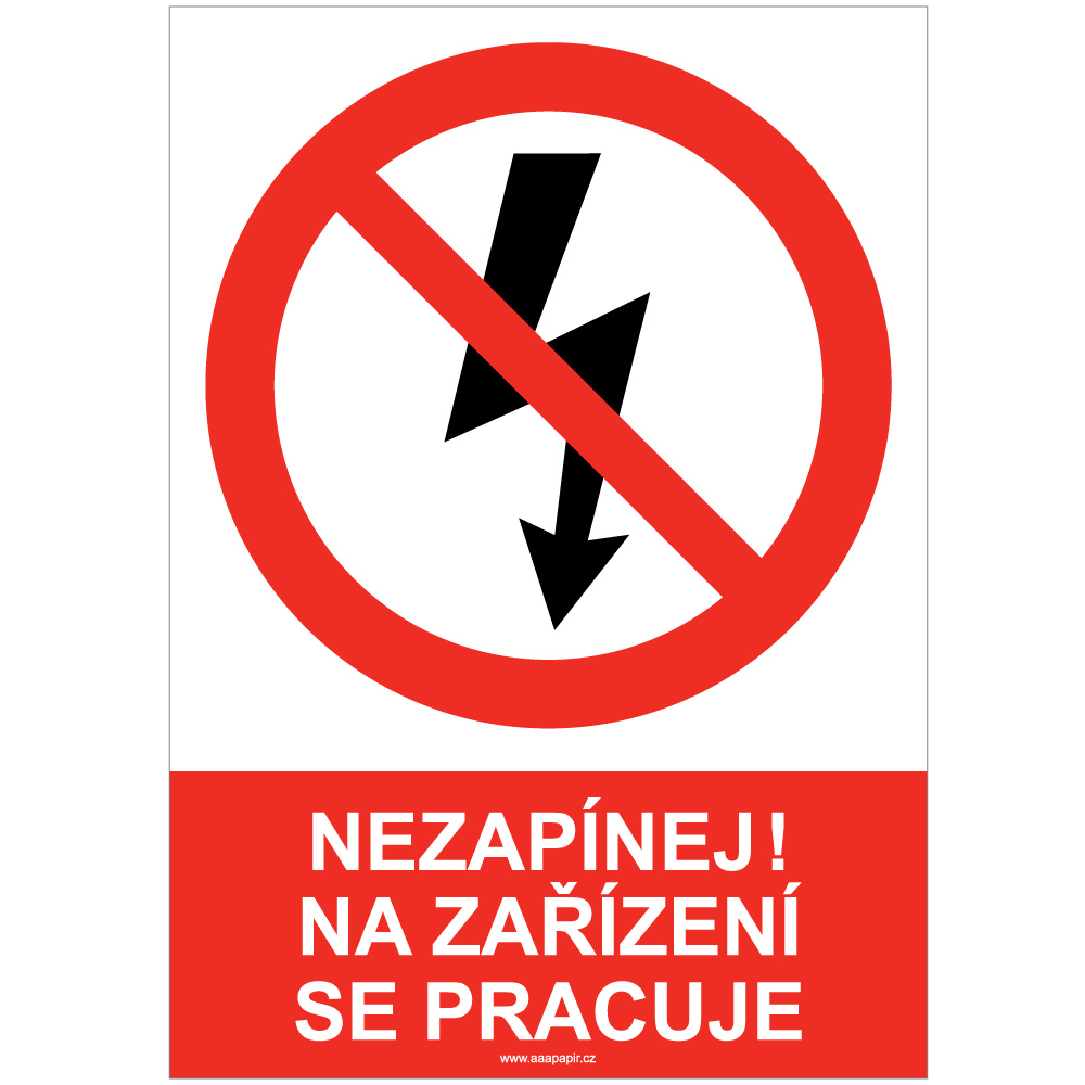 NEZAPÍNEJ! NA ZAŘÍZENÍ SE PRACUJE - bezpečnostní tabulka, plast A4, 2 mm