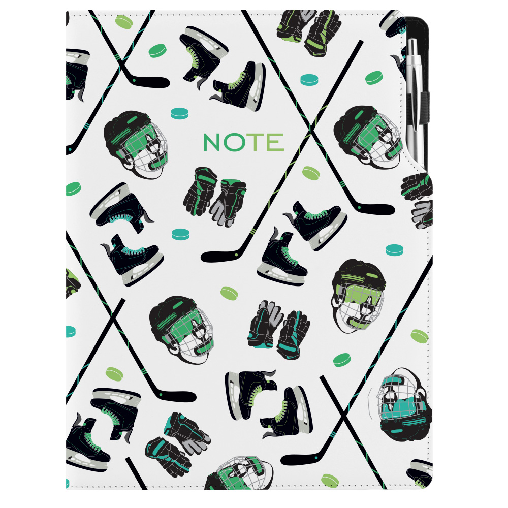 Súčasťou notesu je pútko pre pero a kovová propiska.
