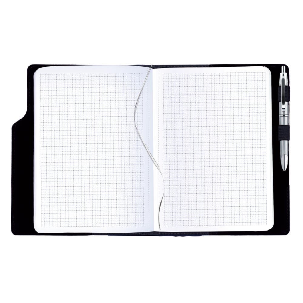 Súčasťou notesu je pútko pre pero a kovová propiska.
