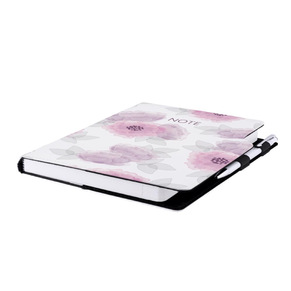 Súčasťou notesu je pútko pre pero a kovová propiska.