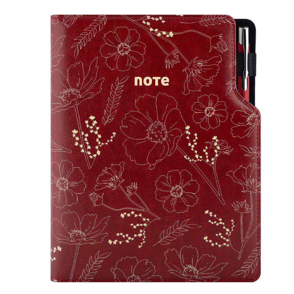 Formát: B5 Rozmer: 170 x 240 mm Farba bloku: biela Záložka: biela Papier: linajkový s perforáciou Počet strán: 144 Väzba: šitá V8 (tkaná niť) Materiál vonkajší: penová výplň dosky potiahnutá hladkú koženkú s tlačenou grafikou Materiál vnútorný: či