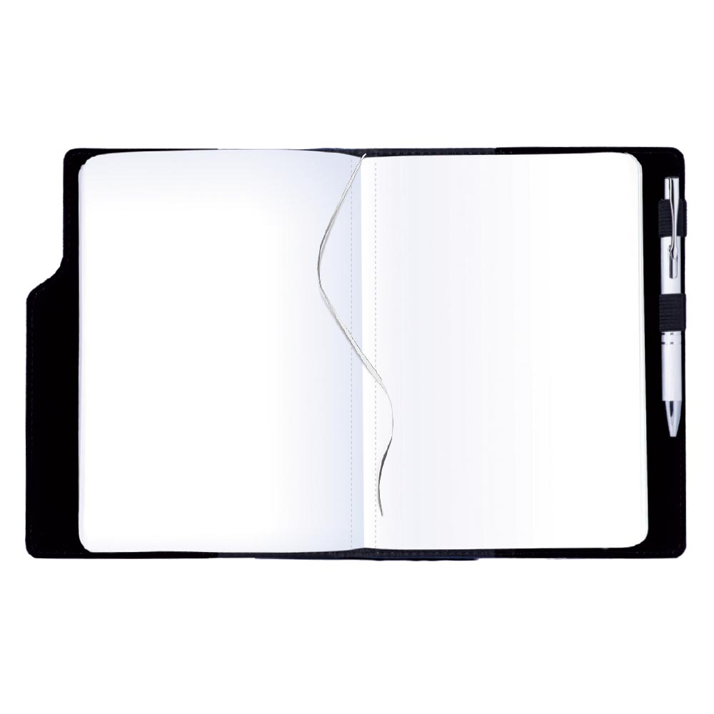 Súčasťou notesu je pútko pre pero a kovová propiska.