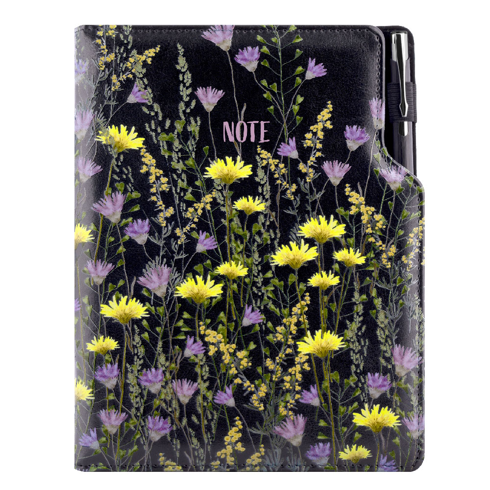 Notes - zápisník DESIGN B5 bodkovaný - čierna - kvety
