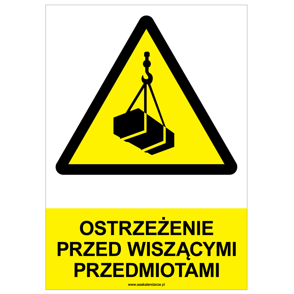 OSTRZEŻENIE PRZED WISZĄCYMI PRZEDMIOTAMI - znak BHP, naklejka A4