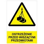 OSTRZEŻENIE PRZED WISZĄCYMI PRZEDMIOTAMI - znak BHP, płyta PVC A4, 0,5 mm