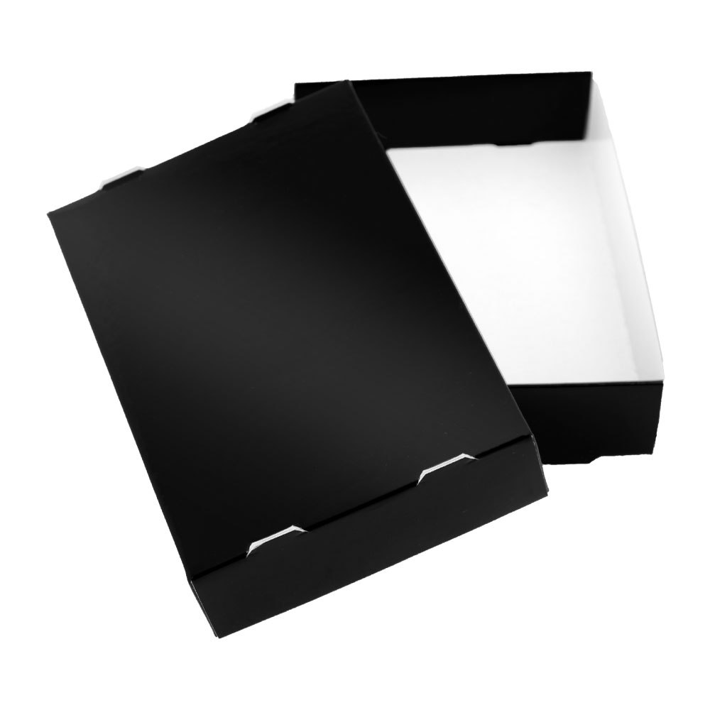 Papierová krabička s vekom skládacia rozmer - 250x310x40 mm gramáž papieru - 600g/m2 farba - černá poskytujeme množstevné zľavy Na zákazku vyrobíme krabičky i iných rozmerov a farieb