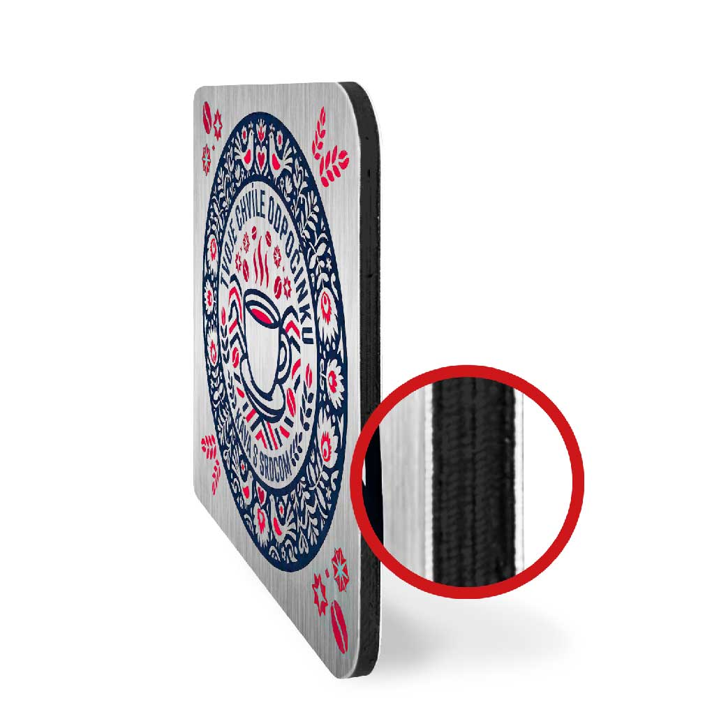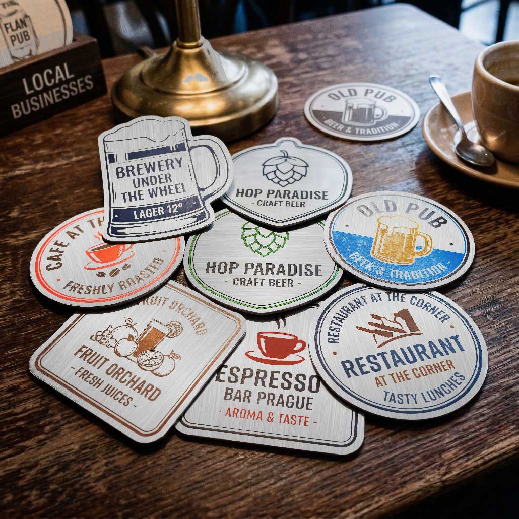 Vyránime na zákazku pivné podtácky z kompozitného materiálu DiBond s hliníkovou vrstvou.