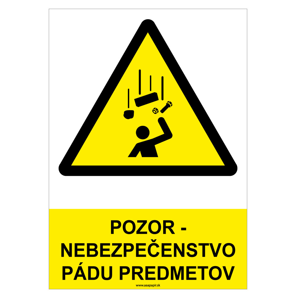Pozor-Nebezpečenstvo pádu predmetov-bezpečnostná tabuľka, samolepka A4