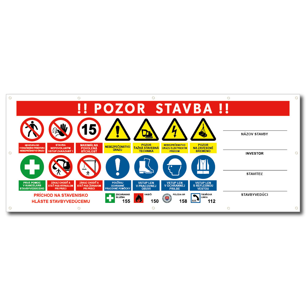 Bezpečnostný banner doplníme Vašim logom a podľa priania Vám doplníme aj osobné údaje (stavbyvedúci, investor atď.).