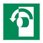 Pre otvorenie otočiť proti smeru hodinových ručičiek - bezpečnostná tabuľka, plast 1 mm 200x200 mm