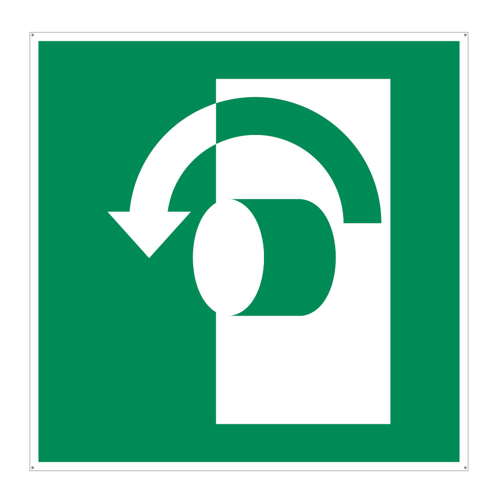 Pre otvorenie otočiť proti smeru hodinových ručičiek - bezpečnostná tabuľka, plast 2 mm s dierkami 150x150 mm