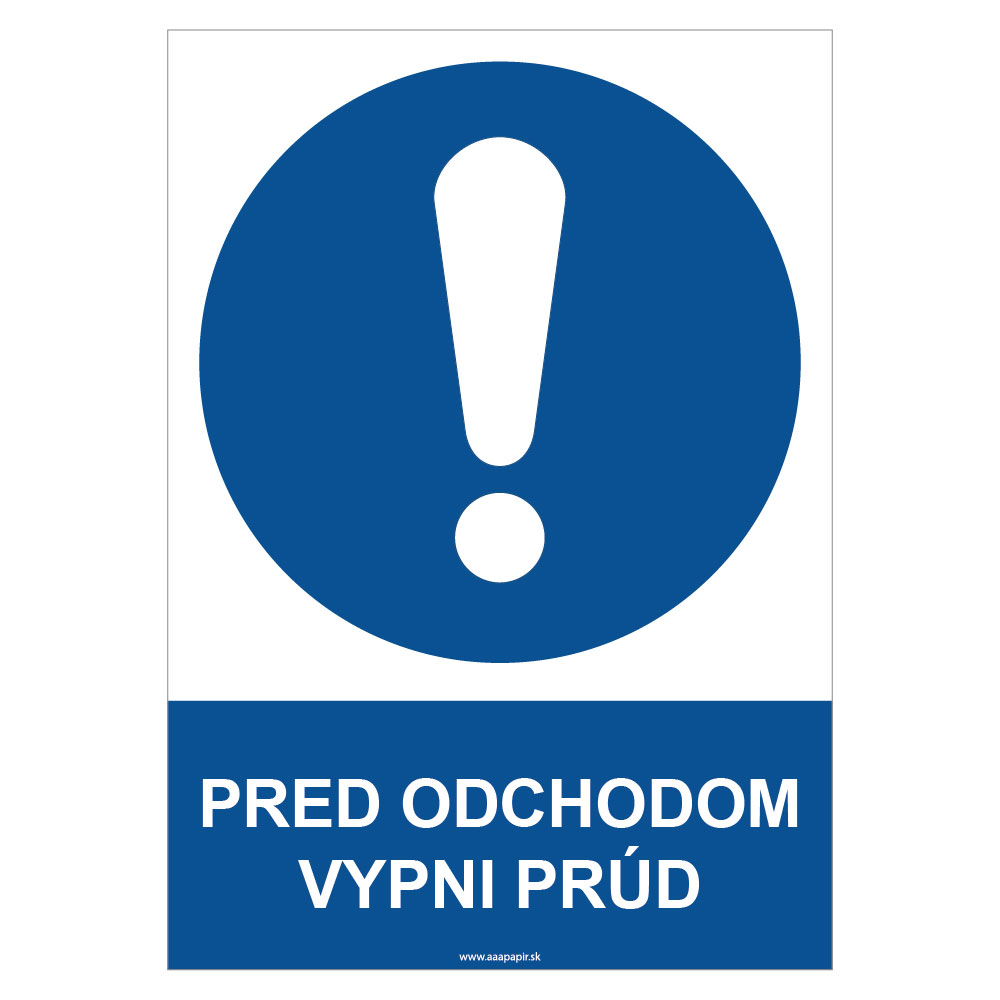 | Pred odchodom vypni prúd - bezpečnostná tabuľka, samolepka A4 | RBT-SA4-217-SK | Samolepka | A4 (cca 210x297) | 0.81 | 1.00 |