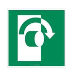 Pro otevření otočit po směru hodinových ručiček - bezpečnostní tabulka s dírkami, plast 2 mm 150x150 mm