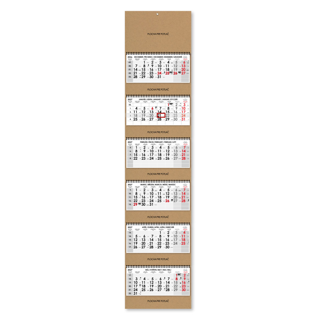 Formát kalendária: 295 x 135 mm