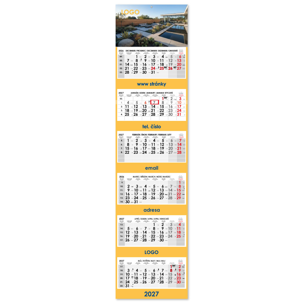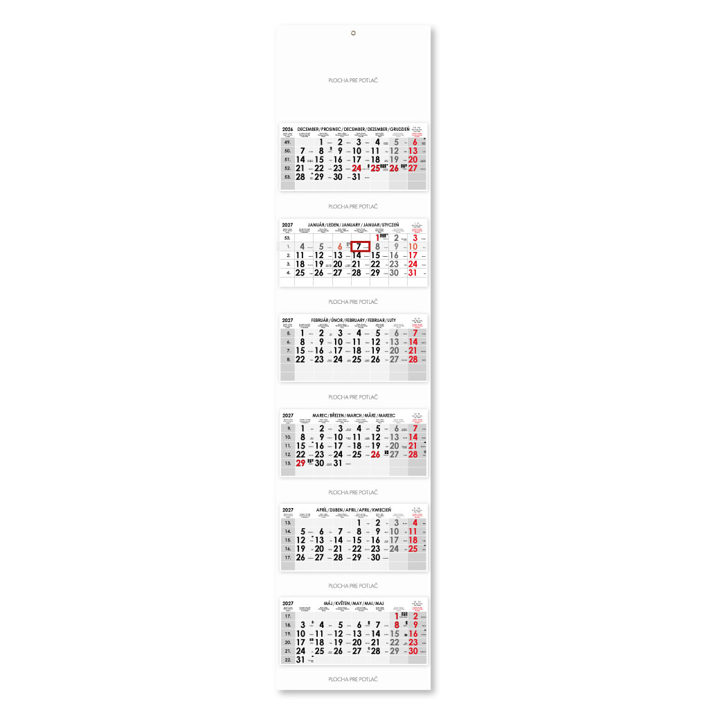 Formát kalendária: 295 x 135 mm