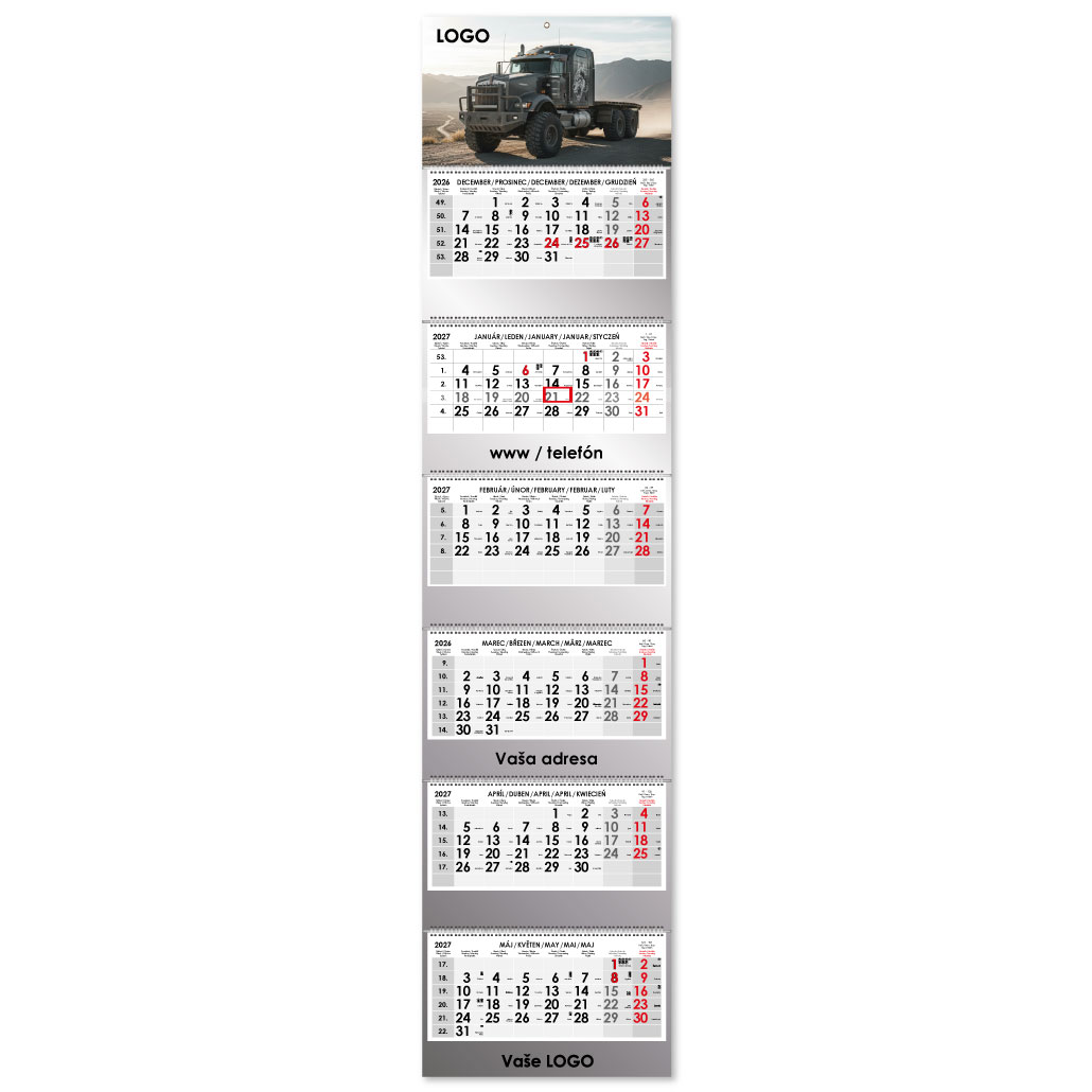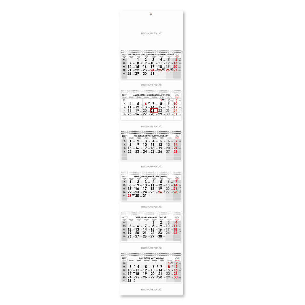 Formát kalendária: 295 x 135 mm