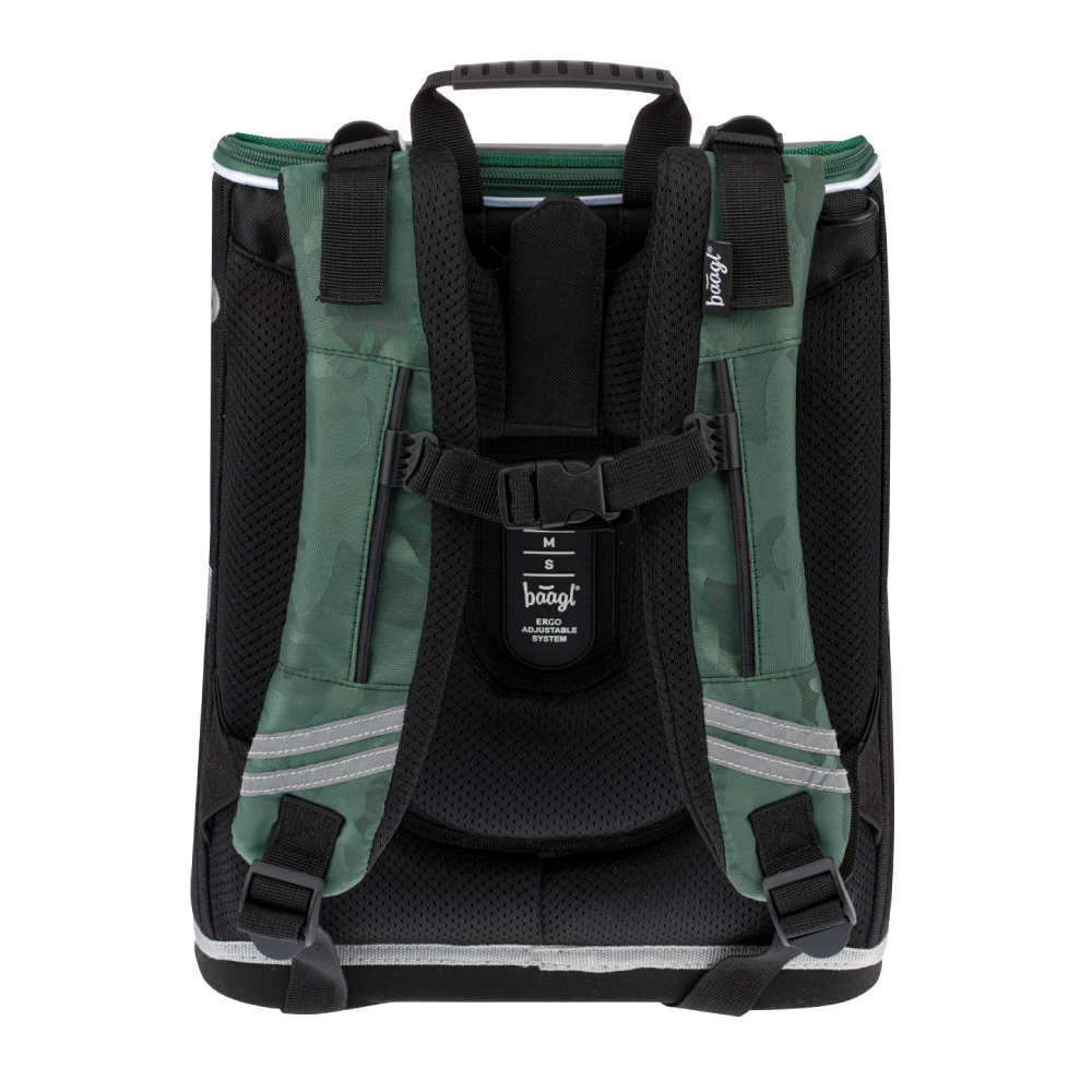 • Školská ergonomická aktovka s vystuženým telom, vnútorným organizérom a troma oddelenými kapsami.