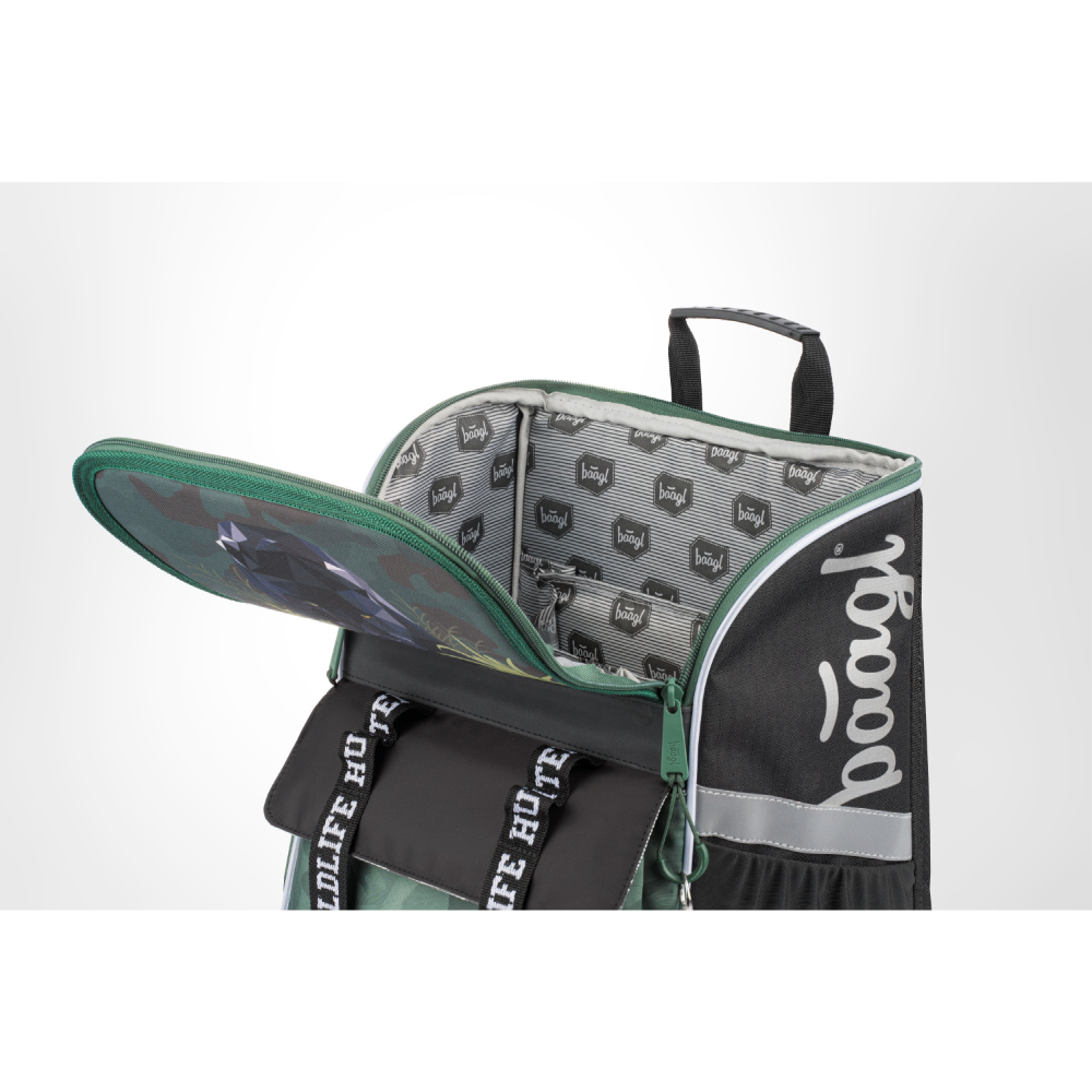 • Aktovka disponuje novým vyklápacím systémom otvárania na zips, vďaka ktorému sa školák ľahšie dostane k svojim pomôckam priamo z lavice a umožňuje lepší prehľad o obsahu školskej tašky.