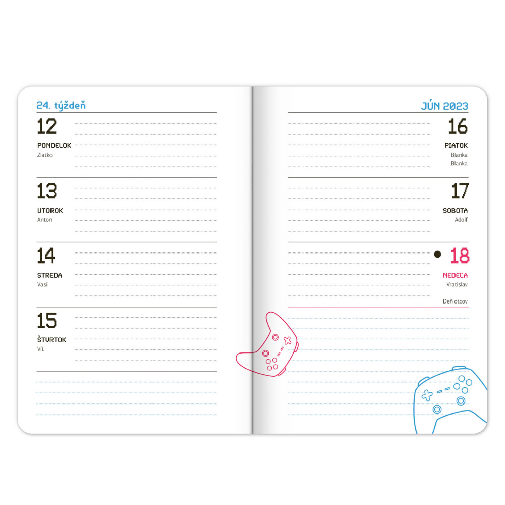 Rozmer: 9,8 x 14,5 cm Format: vreckový Kalendárium: slovenské, september 2022 - december 2023 Počet strán: 176 Väzba: tuhá knižná Papier: biely