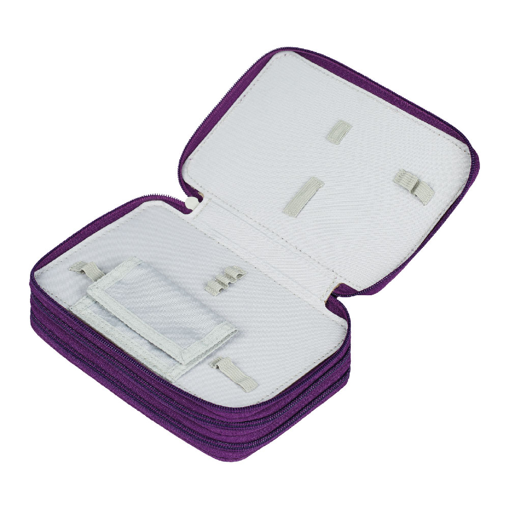 Rozmer: 19,5 x 12,5 x 8 cm Materiál: 100% polyester Hmotnosť: 230 g • Pevný peračník na zips s dvojitou výklopnou chlopňou. • Vnútorná kapsa na zips. • Kapsa so školským rozvrhom. • Peračník je bez náplne.