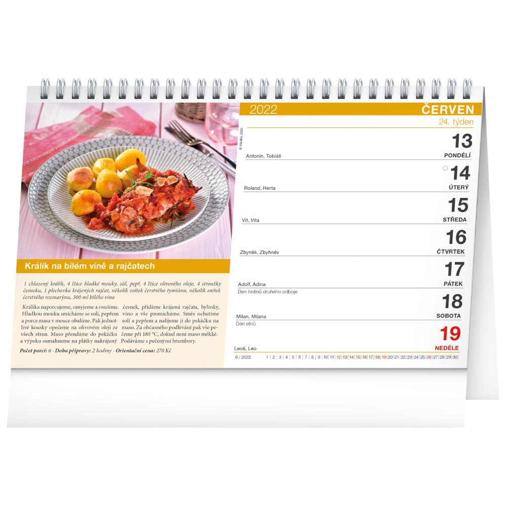 Rozmer: 23,1 x 14,5 cm Kalendárium: české týždenné Rozsah kalendára: 30 listov (obojstranná tlač) Väzba: dvojitá špirála Papier: 100 g/m2 Plocha pre potlač: 23,1 x 2,9 cm