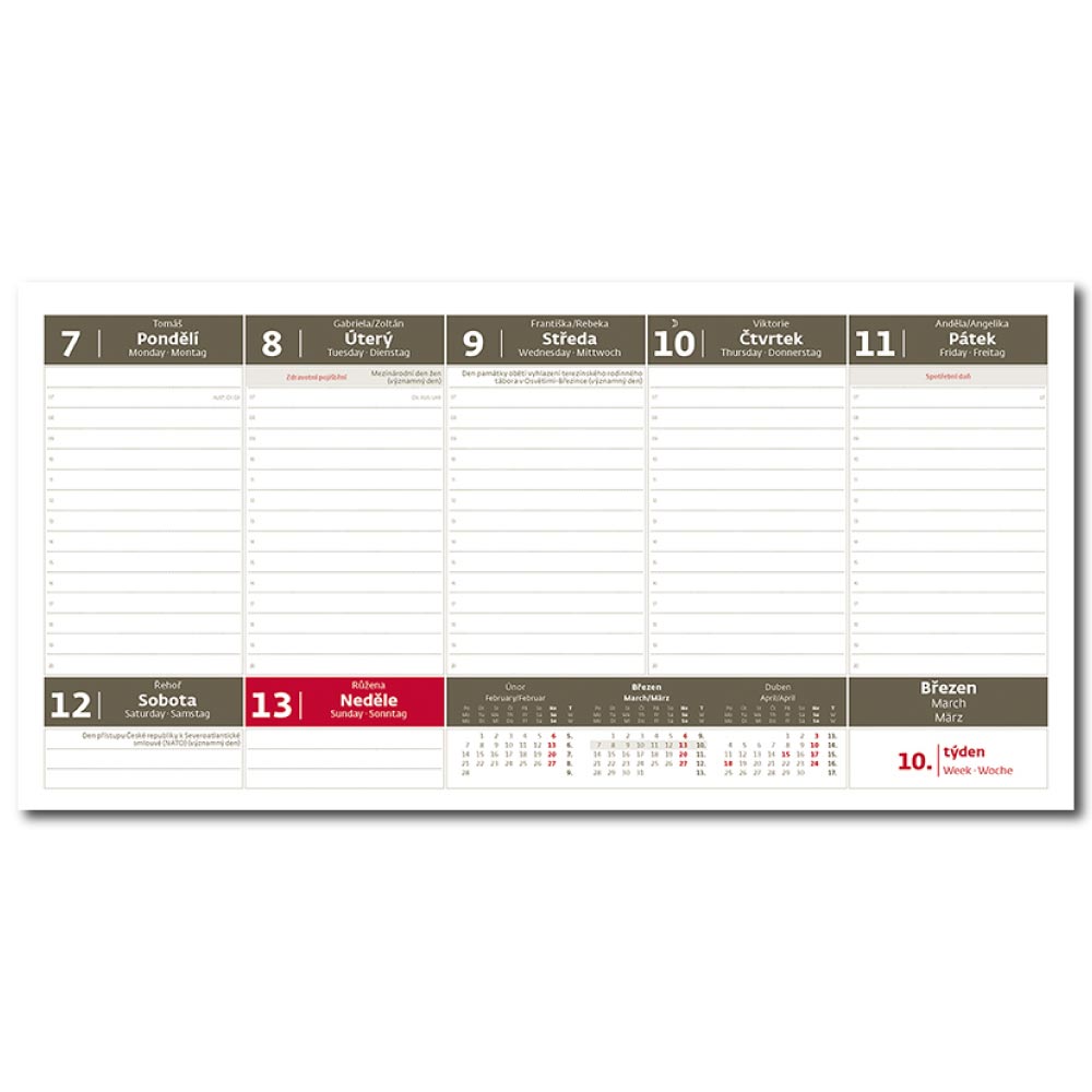 Kalendárium: české týždenné stĺpcové menné+ AJ + NJ