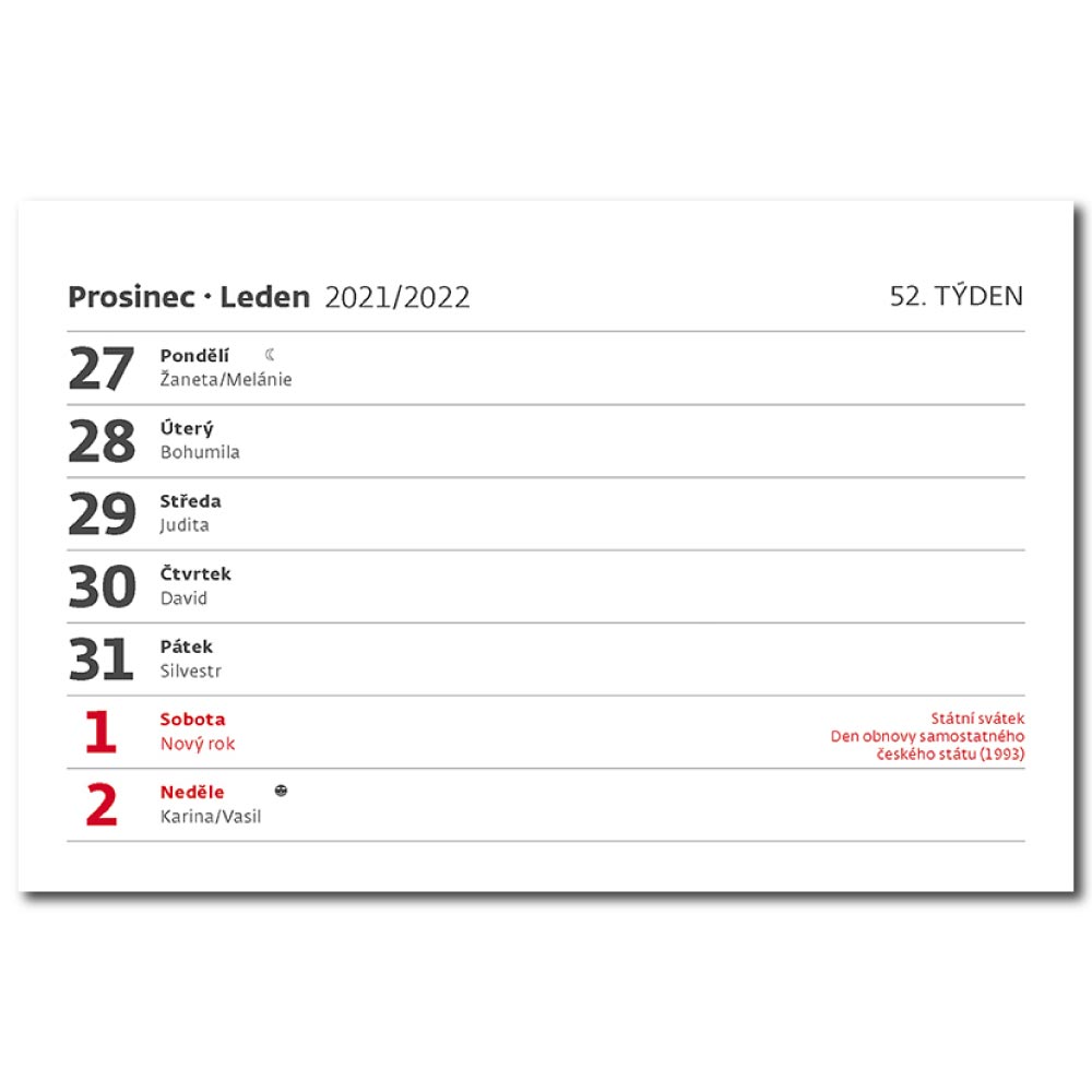 Kalendárium: české týždenné riadkové menné