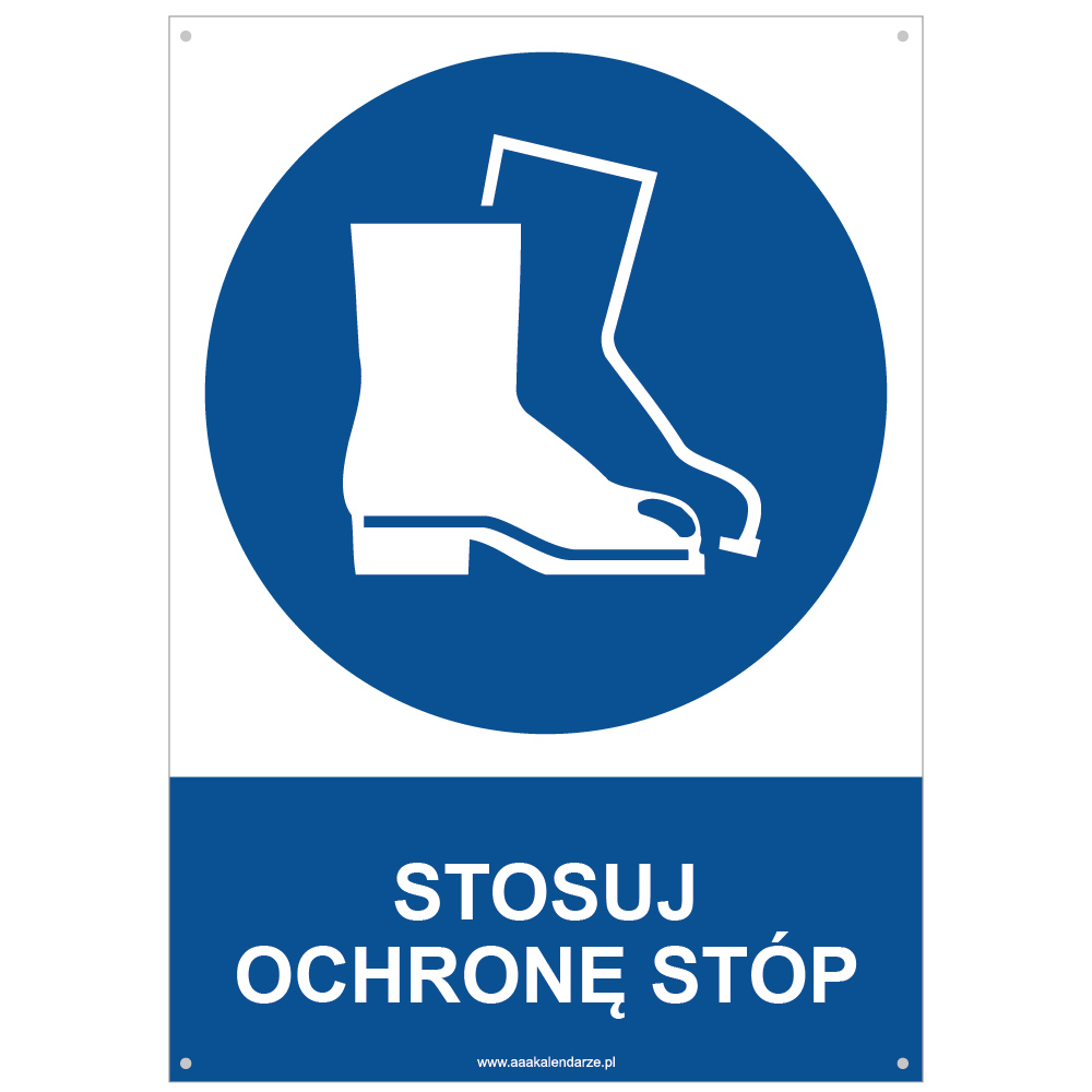STOSUJ OCHRONĘ STÓP - znak BHP z dziurkami, płyta PVC A4, 2 mm