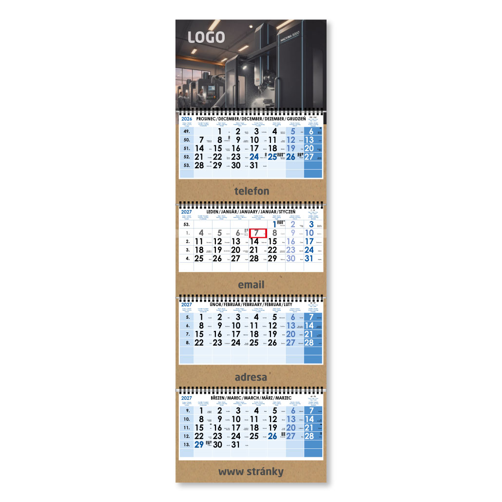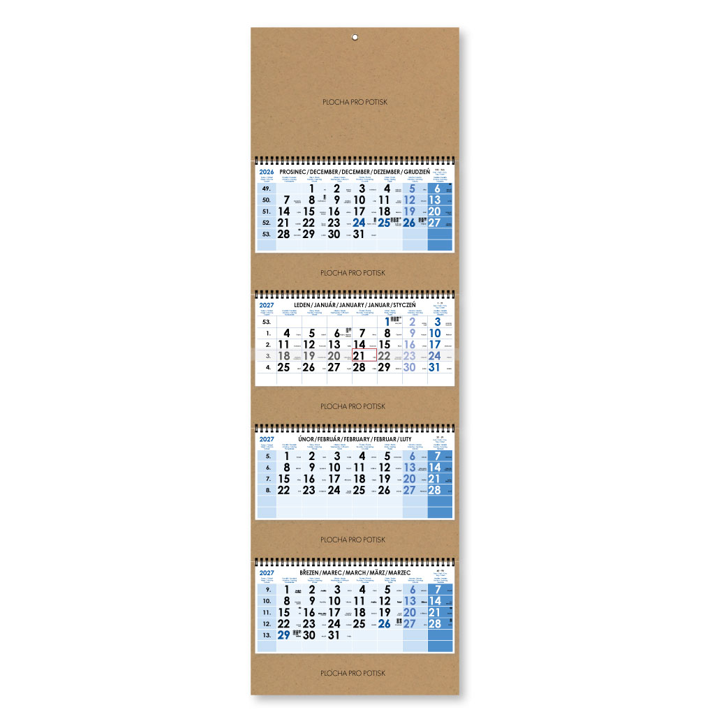 Formát kalendária: 295 x 135 mm