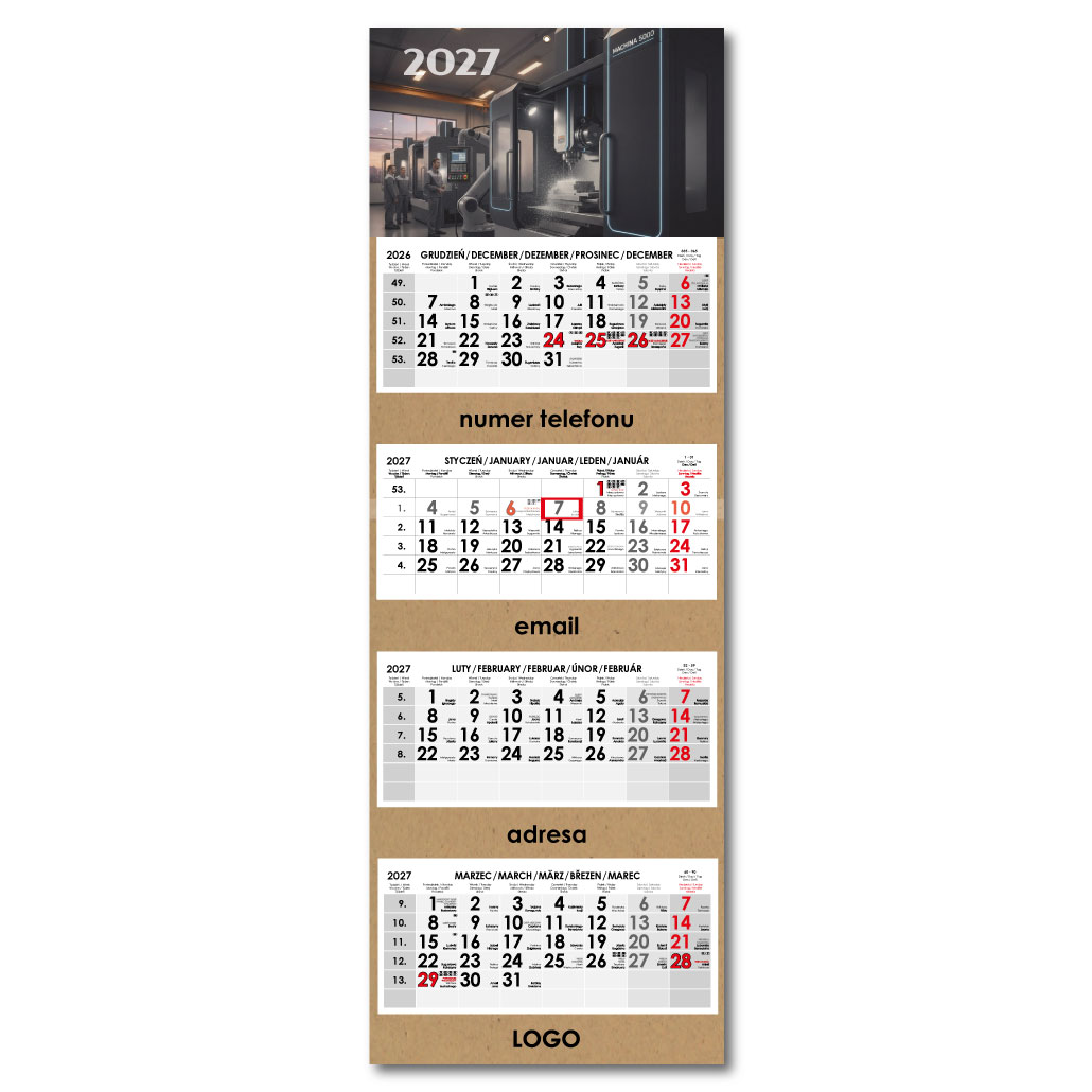 Štvormesačný kalendár Kvatro Kraft skládaný polský 2027 - sivý