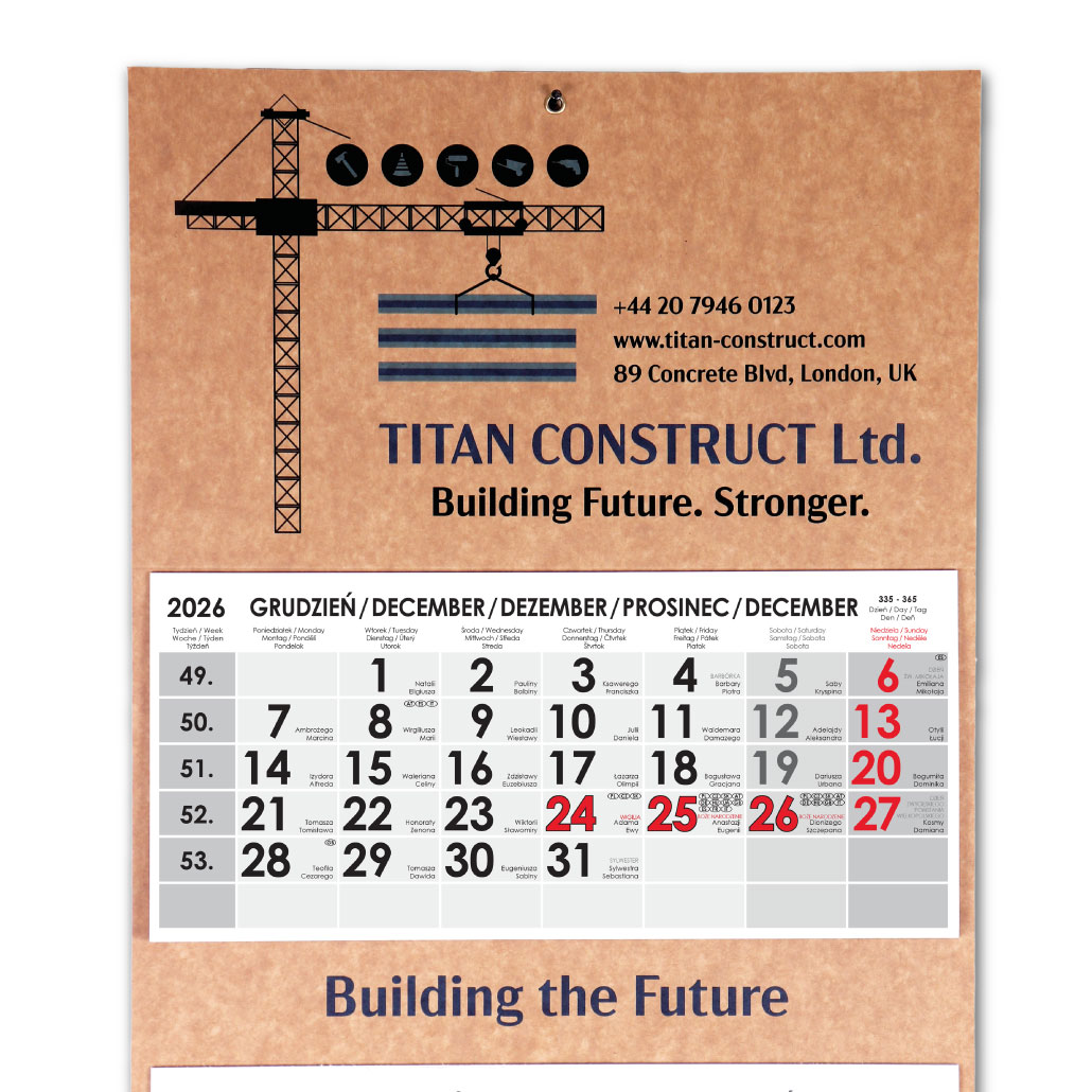 Formát kalendária: 295 x 135 mm