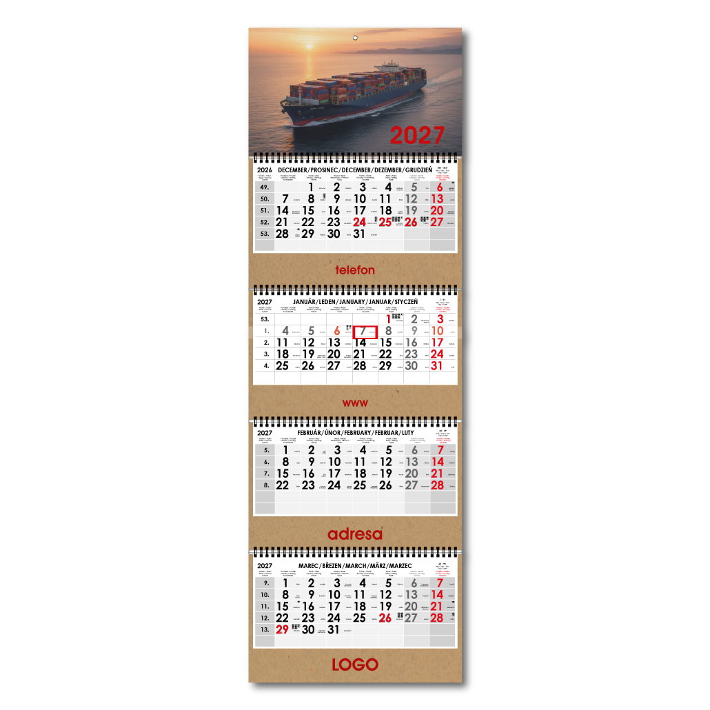 Formát kalendária: 295 x 135 mm