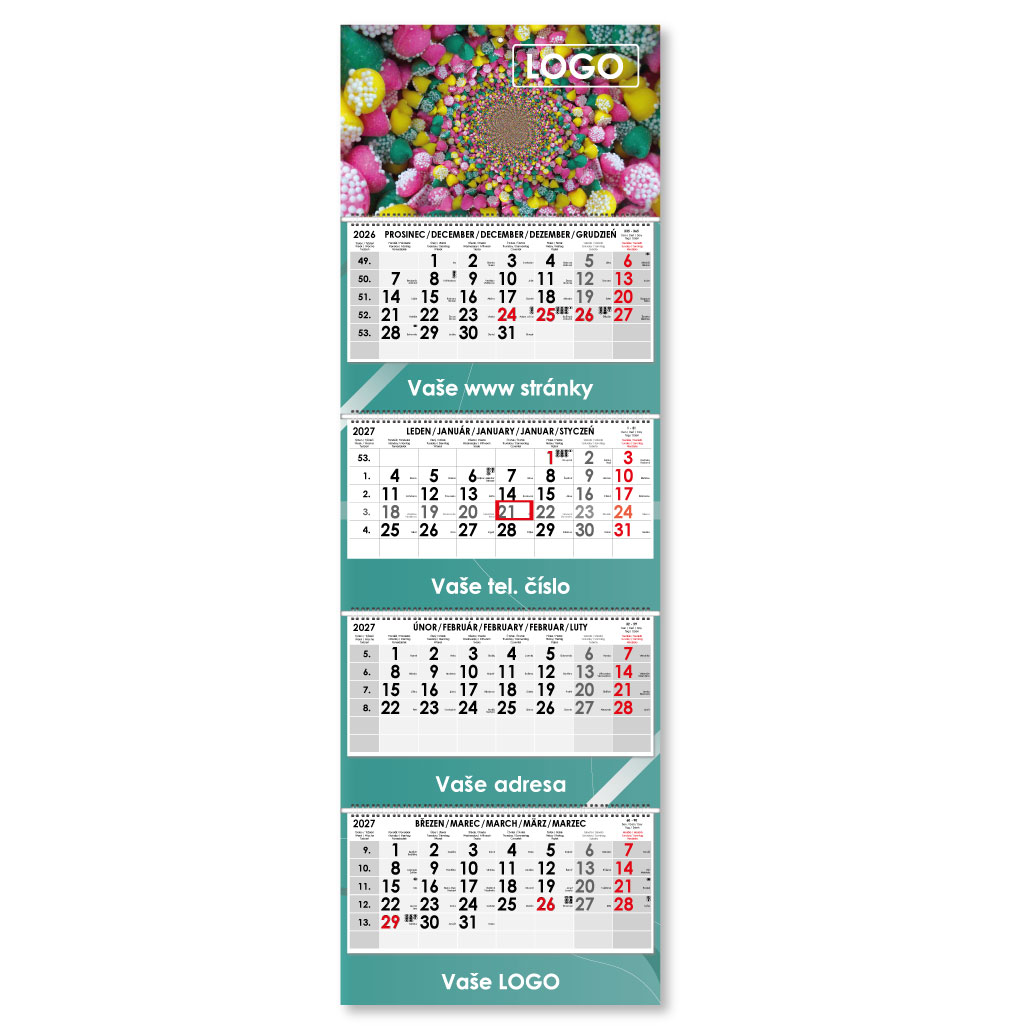 Formát kalendária: 295 x 135 mm