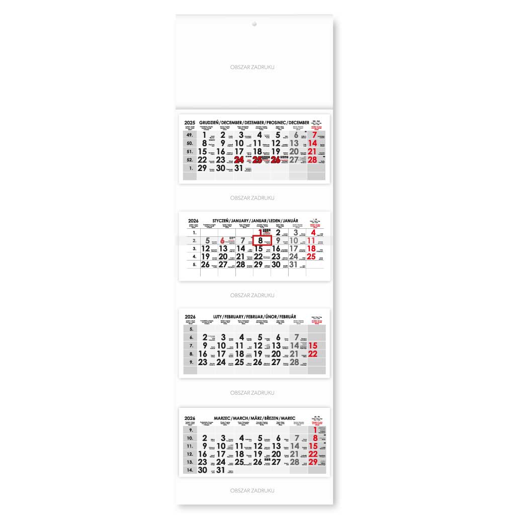Štvormesačný kalendár Kvatro skládaný polský 2026 - sivý