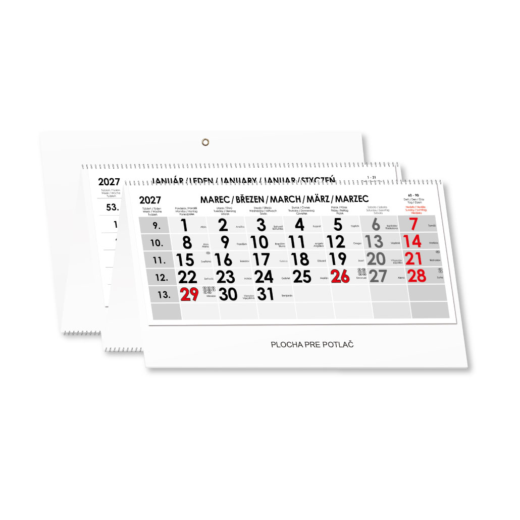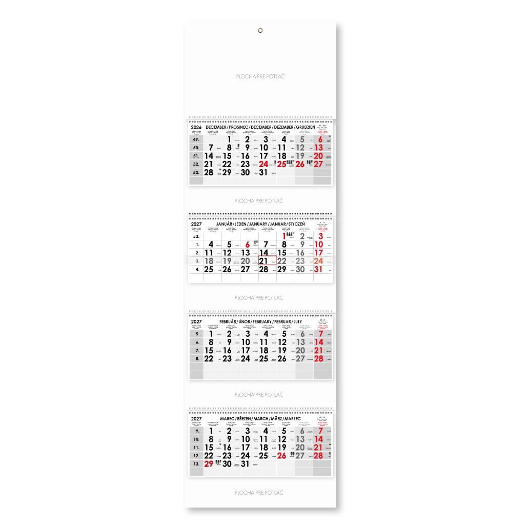 Štvormesačný kalendár Kvatro skládaný slovenský so špirálou 2027 - sivý