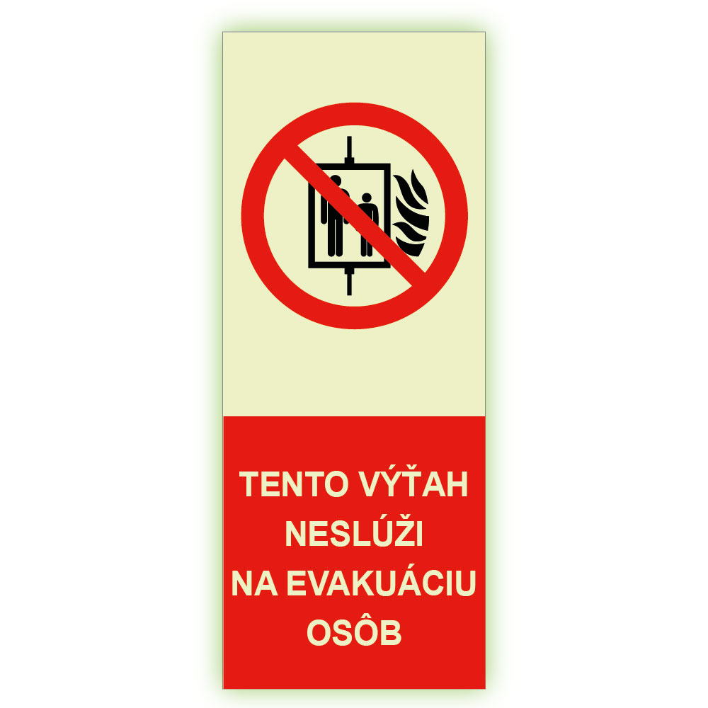 Tento výťah neslúži na evakuáciu osôb - fotoluminiscenčná tabuľka, plast 2 mm s dierkami 120x300 mm