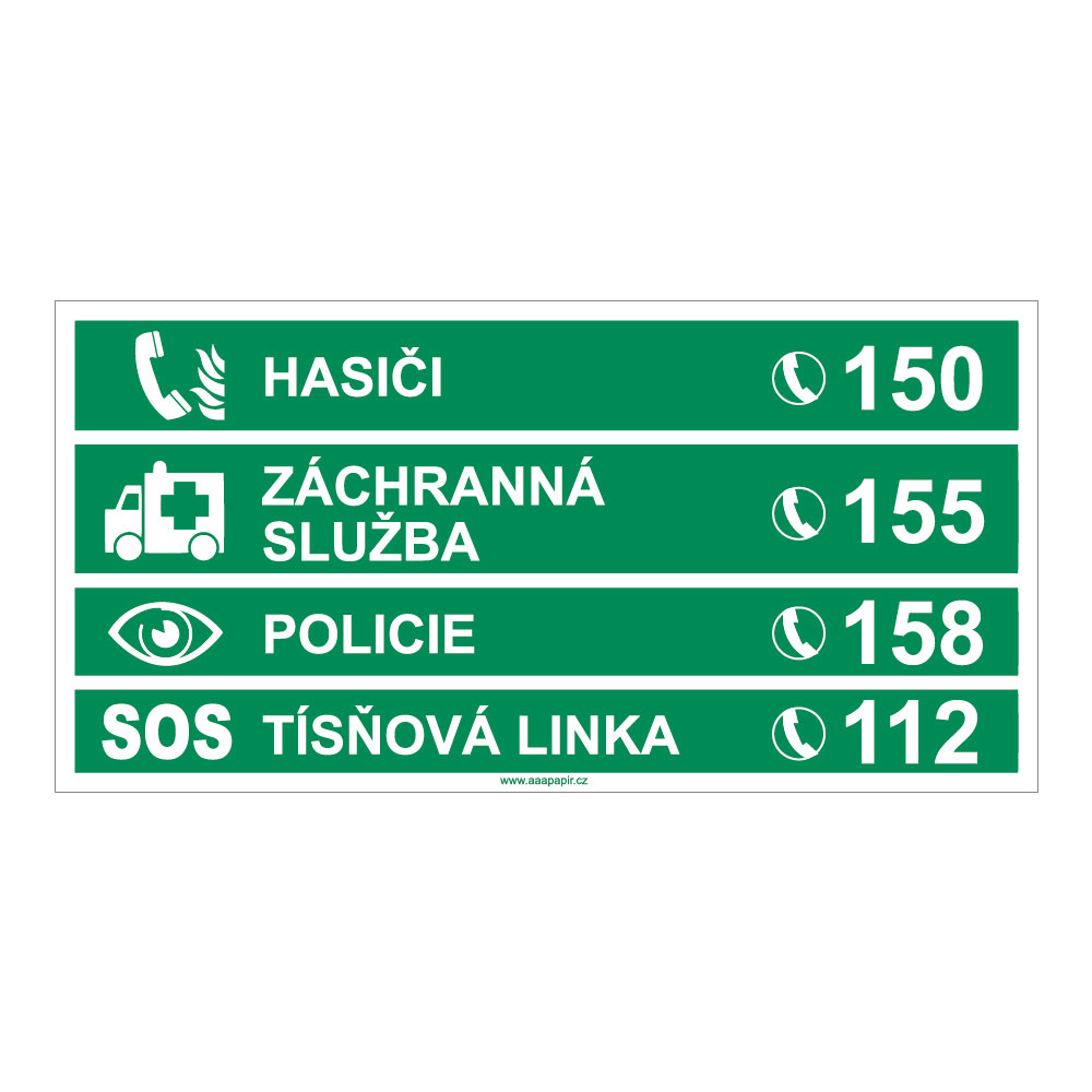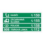 Tísňová telefonní čísla - bezpečnostní tabulka s dírkami, plast 2 mm 200x100 mm