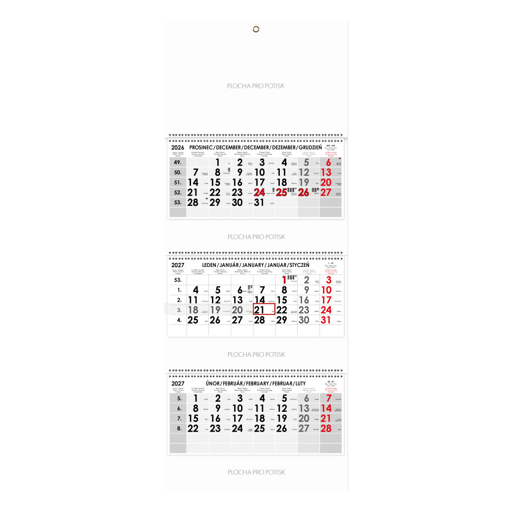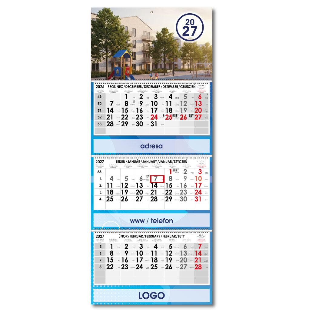 Formát kalendária: 295 x 135 mm
