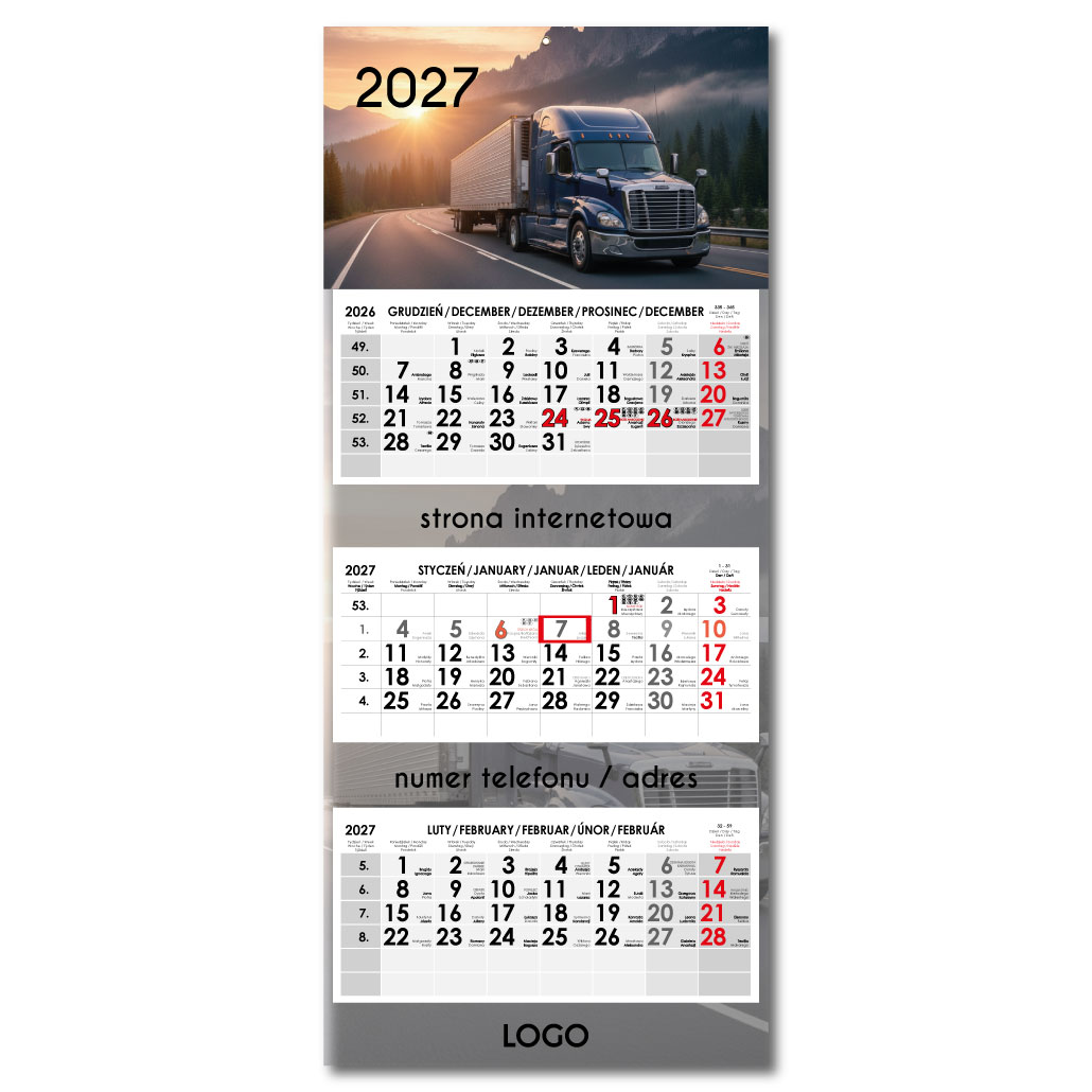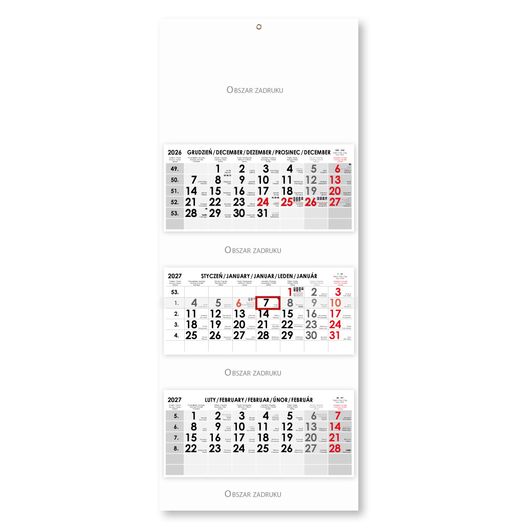 Trojmesačný kalendár Trio skládaný polský 2027 - sivý
