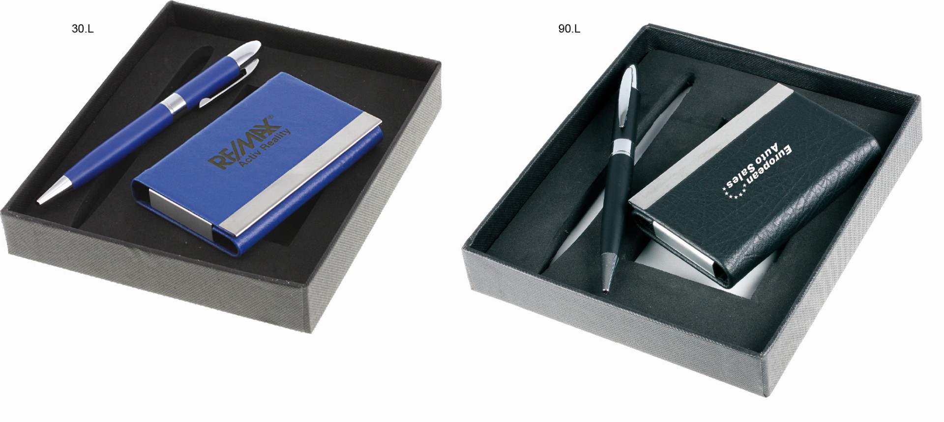 Kuličkové pero a vizitkář s doplňky v imitaci kůže