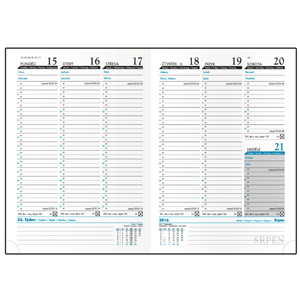 Kalendárium - týždenné české a slovenské menné, dni a mesiace ve 5 jazykoch: CZ, SK, ANG, D, RU