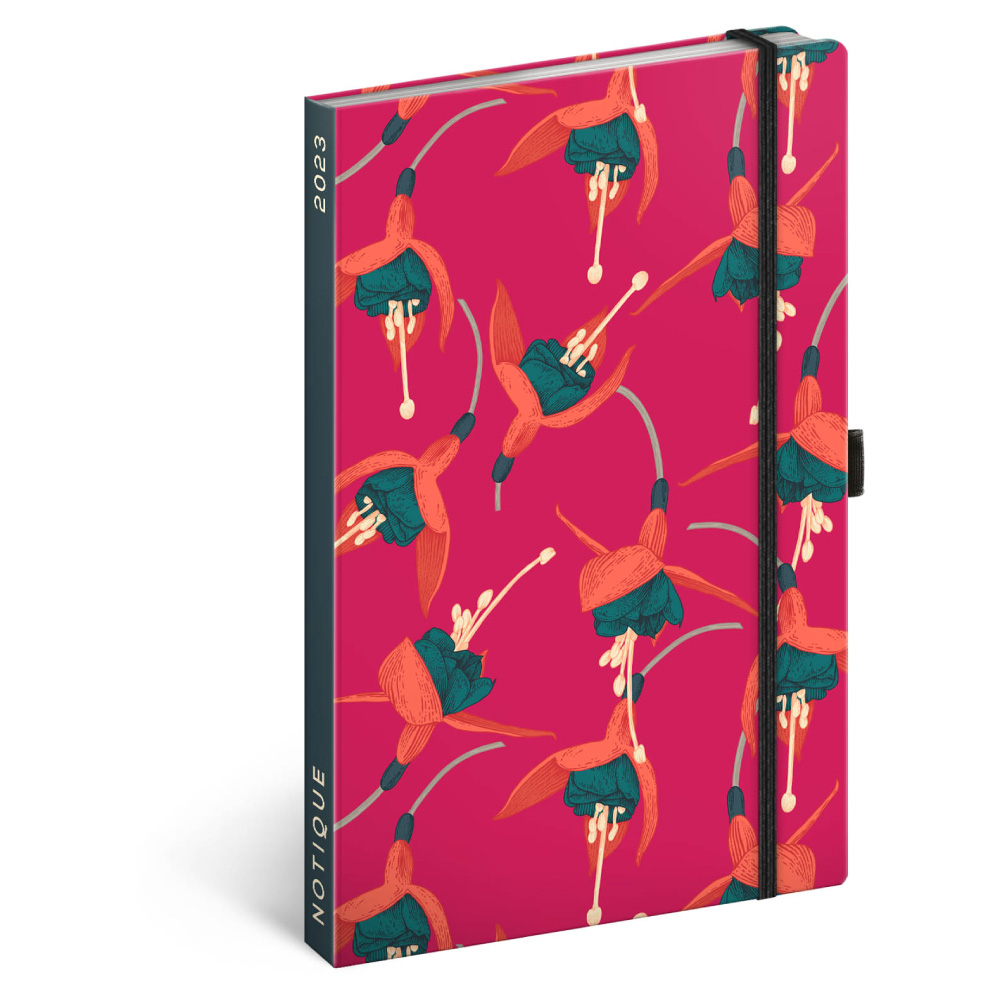 Súčasťou záložka, pútko na ceruzku a vnútorné vrecko na navštívenky.