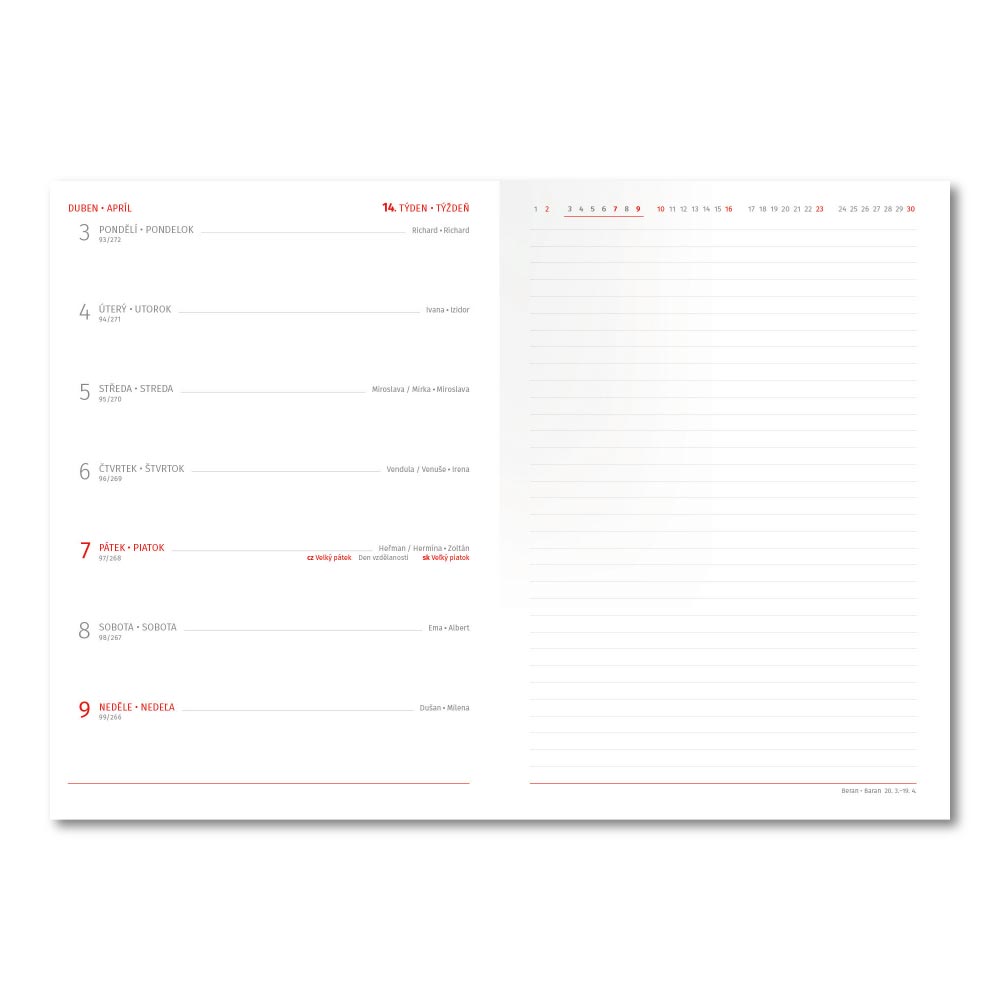 Kalendárium: české týždenné + jedna voľná stránka pre poznámky