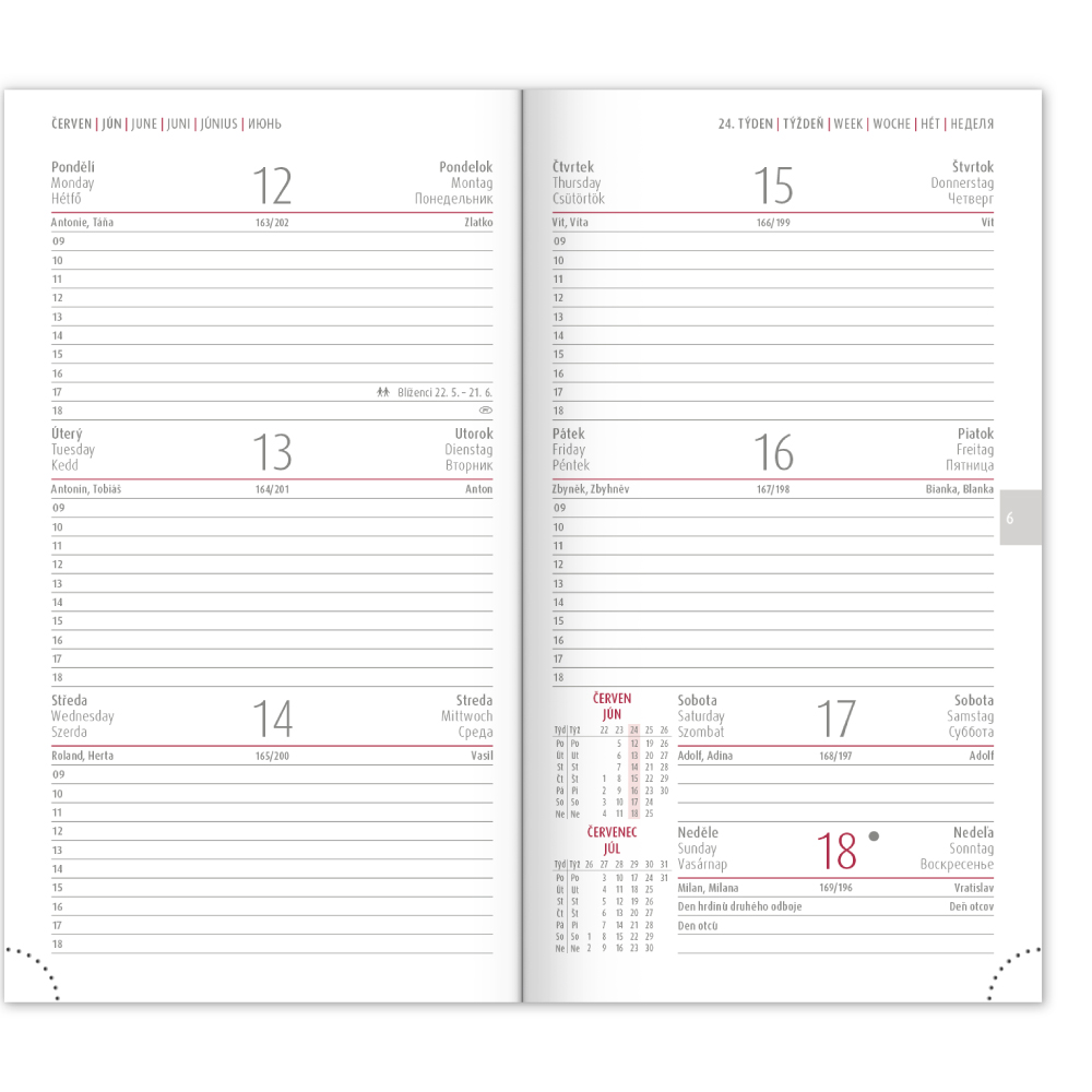 Kalendárium: 6jazyčné týždenné od decembra 2021 (CZ, SK, GB, DE, HU, RU)