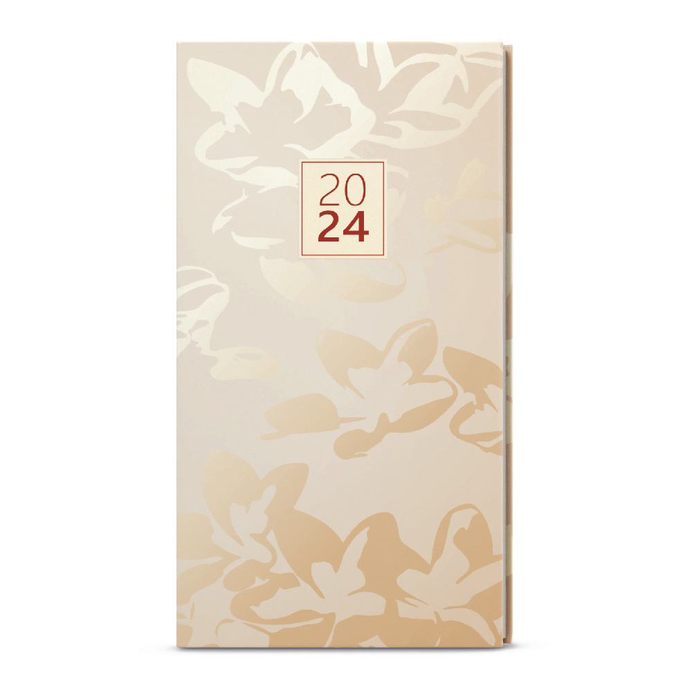 Rozmer: 75 x 150 mm Formát: vreckový Kalendárium: týždenné české a slovenské menné Jazykové mutácie: CZ, SK, ANG, D Poťahový materiál: nepoškrabateľné matné lamino s parciálnym lakom Papier: biely s perforovanými rožkami Počet strán: 128 Väzba: šit