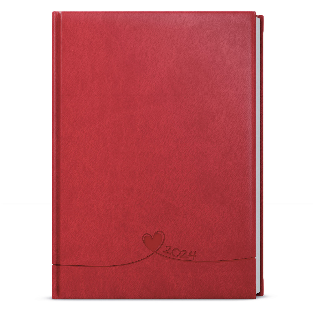 Týždenný diár 2024 Oskar Vivella s ražbou A5 - Červená - Srdce