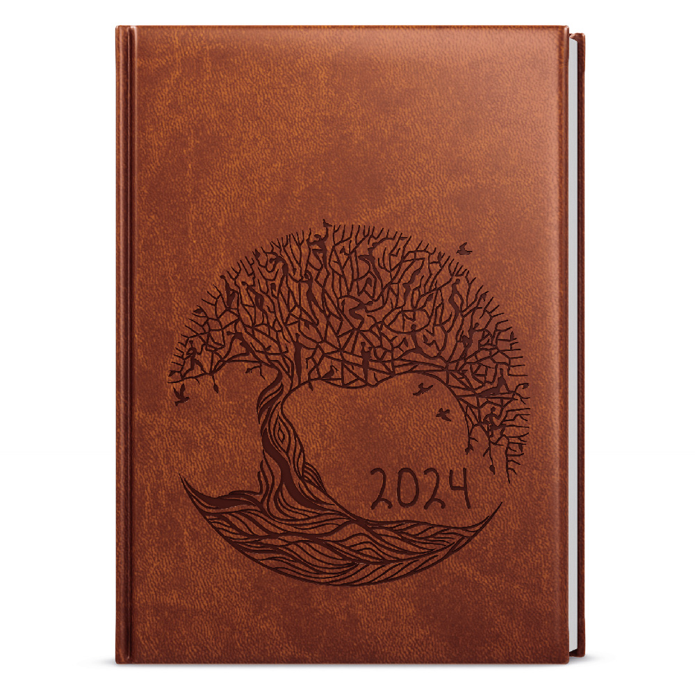 Týždenný diár 2024 Oskar Vivella s ražbou A5 - Hnedá - Strom