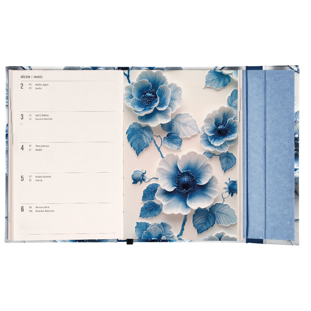 Týždenný magnetický diár 2026 B6 Porcelánový kvet